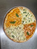 Green peppers, mushrooms, onions, tomatoes, broccoli, black olives, and mozzarella cheese. (Choose white or red sauce).